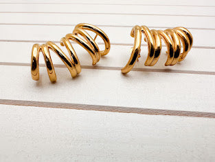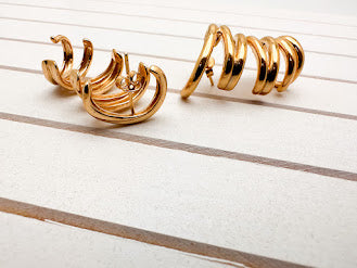 Statement 18k gold plated ear climber earrings, these edgy ear climbers are unique and are limited in stock. They require 1 piercing in each ear lobe and are then draped over the rim of your ears.