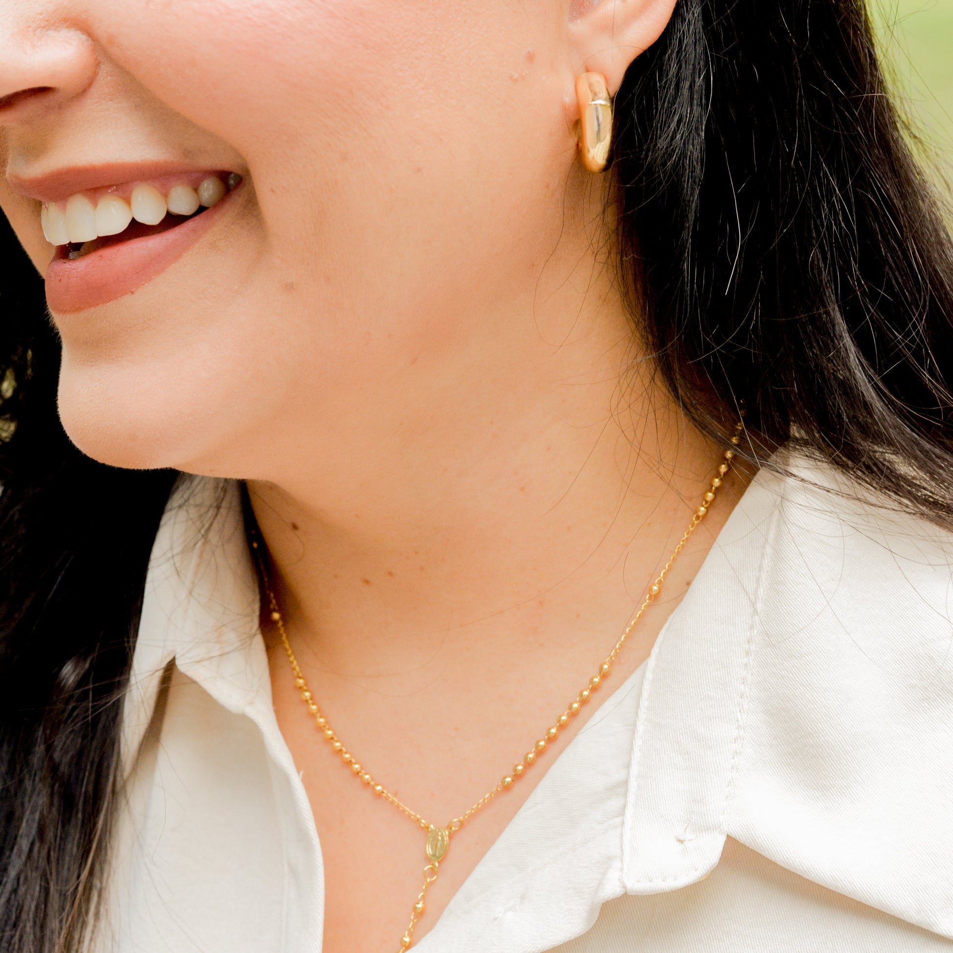 Delicate Rosary Necklace. 18k gold-plated over brass. Nickel free. 17.5 in in length.